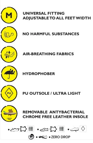 Com uma ponteira ampla, um formato largo e com velcro, são os sapatos ideias para pezinhos com o peito do pé alto e largos. Uma sola flexível, com 4mm, sem elevações e com uma palmilha lisa e removível, para uma maior higienização.